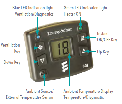 The Eberspächer diesel heater has three heat settings it automatically selects during operation, based on the thermostat reading. This makes the diesel heater very fuel efficient, and allows it to maintain a constant temperature.