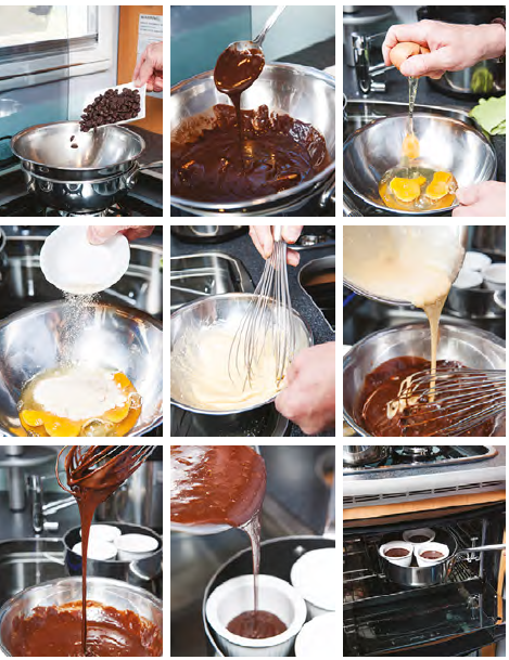 Cook in a hot oven (200°C) for approximately 10 minutes. The pudding will be firm on the outside but soft and gooey in the centre.