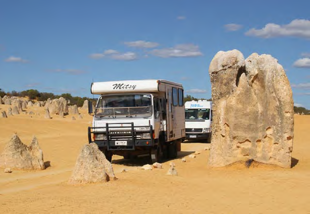 Heading north from Perth it was necessary in past years to pick up Highway 1, mostly away from the coast, on the way to Geraldton. These days, the favoured option is to head north out of Perth via Wanneroo Road, turning off and calling into Guilderton - entrance to the Moore River - a worthwhile detour for morning tea or lunch on your first day out from Perth. From here you can continue your journey northwards towards the coastal town of Lancelin (famous for its sand dunes, Western rock lobsters or crayfish and windsurfing championships), then travel along a newly opened section of the Indian Ocean Drive to Cervantes. This route was previously a rough, sandy 4WD trail; the new fully sealed road takes travellers along the coast past the once quite remote, but scenically attractive, squatters’ settlements of Wedge Island before reaching Nambung National Park and the fabulous formations known as the Pinnacles.