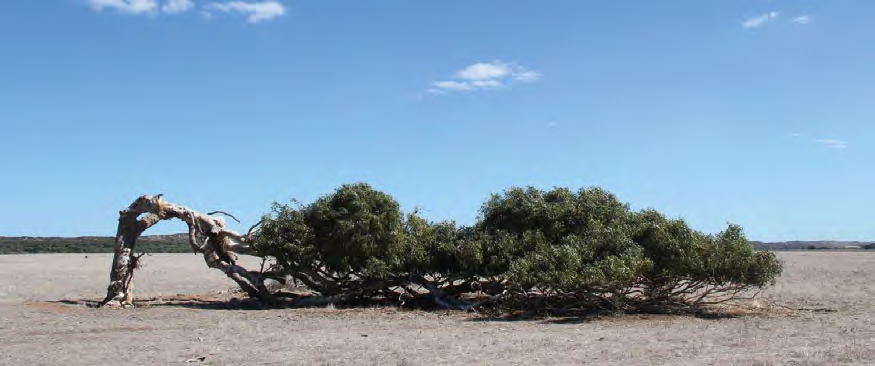 Back on the road, look out for the well-known ‘leaning trees’ – eucalypts trees, which under the prevailing strong winds across the Greenough Flats, have been bent over and are growing along the ground horizontally and not vertically as they normally would be. They are real icons of the region.