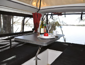 Dining is on a good-sized table with a basic chrome pole mount that provides a reasonable degree of positioning choices but no height option. A Lagun table is available and for $165 would be a good choice, especially as when the standard pole is removed to make up the bed it leaves a big fixture on the side of the bed that could do some damage if bumped in to. This is perhaps the most obvious design/price compromise and I think it does the Campino no favours.