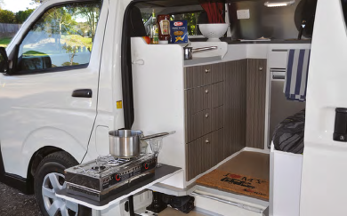 As there are only so many ways you can arrange things inside a rectangular box, the actual layout isn’t really new. There’s an L-shaped kitchen that runs across the vehicle, behind the cabs seats, then returns towards the rear, down the driver’s side. There are also two single beds that can be made into a large double/queen and all that sits beneath a traditional pop-top roof. Hardly cutting edge on face value you might think, but that’s where you’d be wrong. If the devil is in the detail, this time he’s wearing a halo and is a fellow you really want to know.