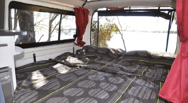 Starting from the roof down, here are the things that set the Campino apart. The pop-top is their own design and strong enough to walk on. It also has 25mm of insulation and a 3mm easy-clean ceiling. Its gutters are designed to channel rain away from the side door while its skirt has zippered and screened side windows (a third window is optional). The roof is held down by simple webbing straps that loop through sprung buckles and hold the roof securely in place when travelling. If you like, a fixed hi-top roof is optionally available. While flush glass windows on both sides add a streamlined look, security insect screens have been added to the smallish sliding windows for increased ventilation. A three-metre Dometic awning is also standard and most thoughtfully, the winder handle has been shortened just enough to remain easily useable, but store conveniently in the gap between the entry step and floor.