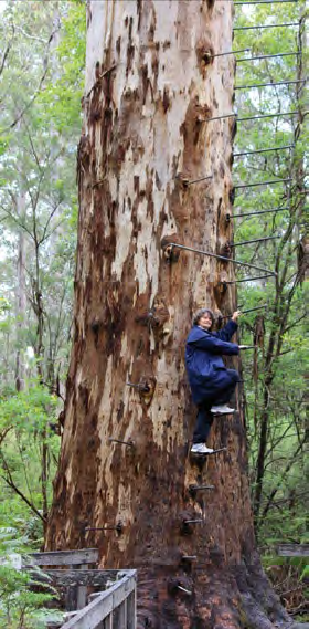 Pemberton was our next camp. We were amazed at the cheap home prices, the beautifully coloured parrots, and admired the rows of neat vines at the many wineries, plus the different type of wattle that were in bloom with their beautiful scent. The super tall Gloucester Tree was too dangerous to climb in the wet, but the walks around it were intriguing, though a bit of a challenge in the light rain with the close bushy undergrowth. Additional walks around Big Brook Dam ensured we had plenty of exercise for the day.