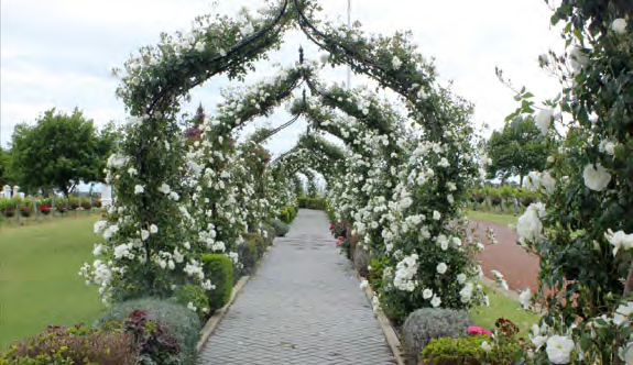 All the wineries we visited had some special, unique features but the Voyager Estate stood out in several ways, first and foremost through its sheer size and beauty. The large stark white buildings in Dutch South African architectural style dominated the surrounding acres of lush, green lawns, but the most breathtaking aspect was the abundance of roses. There were two walled rose gardens, amongst other hedge-lined garden beds, and a long arched avenue, covered in roses, leading to the cellar door. All the footpaths and borders of the numerous car parks were lined with roses and at various intervals, rose arbours had been erected. The place certainly kept several gardeners employed.