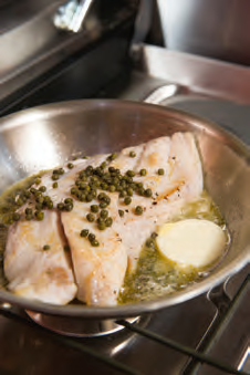 - In a frypan, heat the butter and olive oil. Season the fish fillets then place flesh side down in the pan and fry for two minutes to seal, then turn the fillets and fry the other side for two minutes.