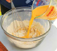 In a bowl, beat the eggs, milk and salt together. Stir and lift the flour to aerate it and beat the flour into the egg mixture to make a batter.