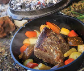 Tags: camp oven roasting beef vegetables gravy