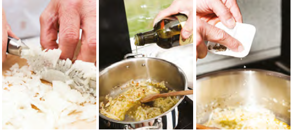 - Put a large, heavy based saucepan on a high heat, add the oil and butter and fry the onion, garlic and chilli (both dried and fresh) until soft. Season with salt and pepper.