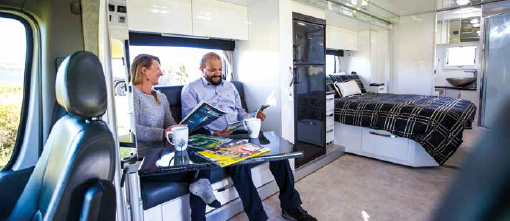 “There’s ample storage under the bed, a full-length pull-out pantry, and large fridge. In the ensuite is a washing machine and separate shower. For couples wanting a luxurious home-away-from-home, this motorhome is definitely the one for you.”