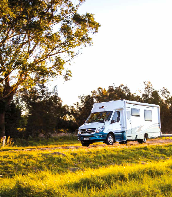Mercedes-Benz Sprinter is the Wirraway choice for its 260 range and this vehicle has a 519 CDI cab chassis that comes with a 3L V6 turbo diesel that puts out a maximum of 140kW and a very torquey 440Nm. It also comes with a GVM of 5250kg, which is higher than the normal Benz specification of 5000kg, and requires an LR licence. Having a Tare of 4600kg gives the motorhome a load capacity of 650kg.