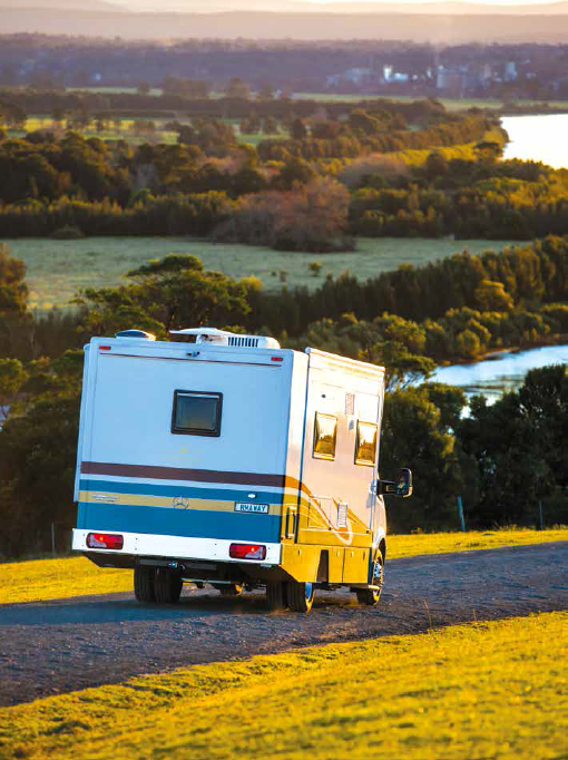 “It is a really beautiful motorhome, with a stylish bathroom and kitchen, liquor cabinet, and power points at every turn, including three in the roomy ensuite alone,” she says.