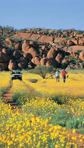 The deserts are alive with reptiles, marsupials, birds and insects. And it takes little more than a sprinkle to turn a landscape that might seem predominantly red dirt into an explosion of greenery or blankets of colourful wildflowers. And of course there are the people – enjoying the rough but honest lifestyle far from the big cities. In this article we’ve highlighted a selection of these desert experiences.