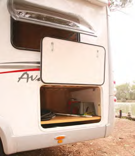 External bin space consists of the gas cylinder bin on the offside behind the driver’s cab and two bins on the nearside. They are not really sealed for external use – the forward one giving access to the under-seat area and the rear one giving access to the under-bed area. A plastic bin for hoses and other items would be very handy.