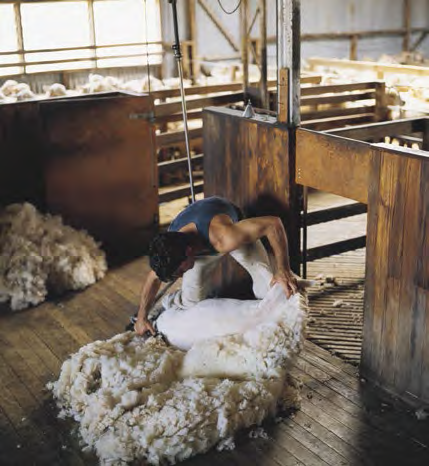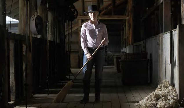 An honorary roustabout sweeping up after the shearer. Tourism NSW