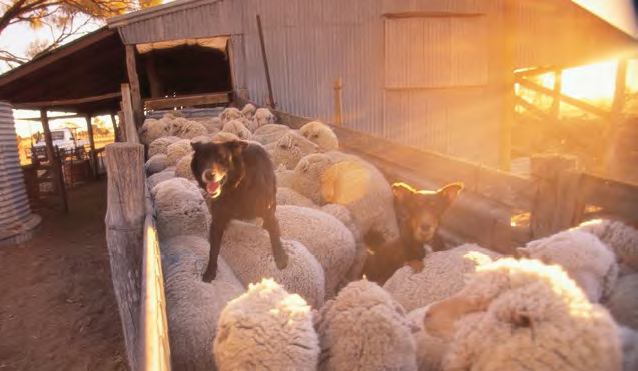 Sheep and sheepdogs at the Toobrack Station south-west of Longreach. Tourism QLD