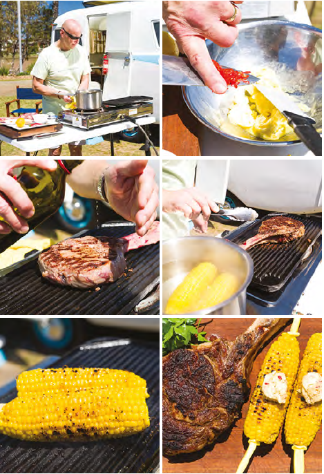 Place the part-cooked corn ears on your barbecue alongside your steak.