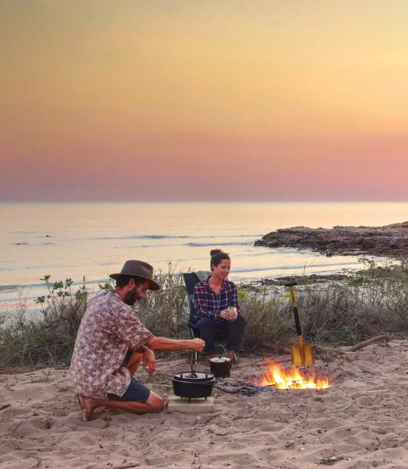 Campers Wendy Freeman and David Howell (below) recommend hitting the op shop when you’re putting together your camping kit to stock up on cutlery, cheap wine glasses, and anything else you might need in your camp kitchen. The benefits are two-fold – you’re guaranteed to grab a bargain and you’re recycling!