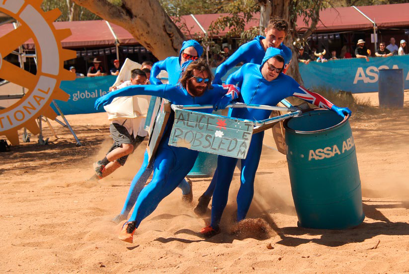 • The Henley-on-Todd event is held each year in the Central Australian town of Alice Springs. It’s a Rotary of Alice Springs event with a wide range of sponsors and volunteers who help to make it all happen.