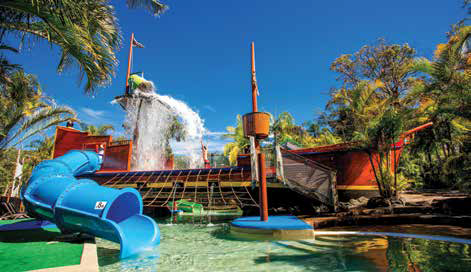 Best bits: pirate ship water park with three slides in solar heated pool, resident kangaroos, food, and brand new lodges