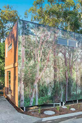 The seven Ngurra lodges (meaning ‘place of home’ in the Dunghutti Aboriginal language) boast a decal that replicates the forest setting behind them. Two hundred original photos have been photo-shopped together to create the life-like landscapes, which mould the lodges into the local bushland.