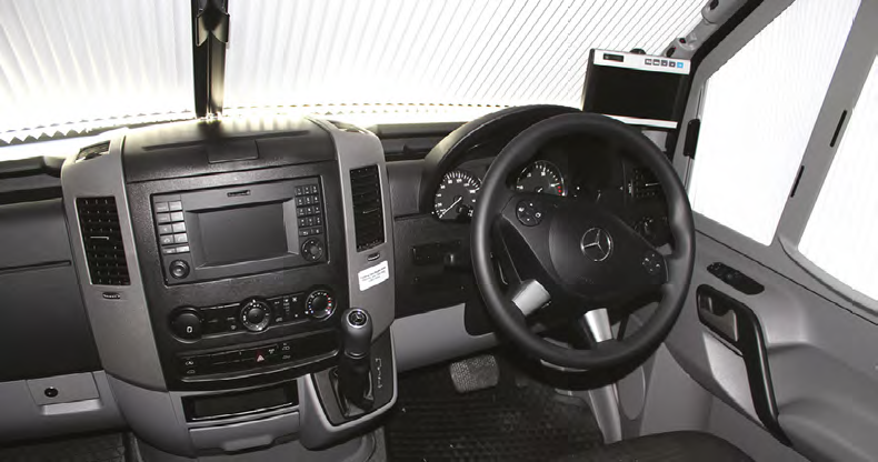 A tough tourer needs to lead with a strong – not necessarily square – jaw and the Mercedes-Benz Sprinter fi ts the bill. Powered by the 3.0-litre turbo-diesel V6 with 140kW of power available that peaks at 3800rpm, it’s the 7G-Tronic auto transmission that makes the best use of that power and 440Nm of torque. With torque kicking in at 1400rpm there are seven ratios that never let you feel like you’re in the wrong one. Changes are barely perceptible and about the only downside to the transmission set up is the fact that it’s easy to knock the lever into ‘manual mode’ with your left knee.