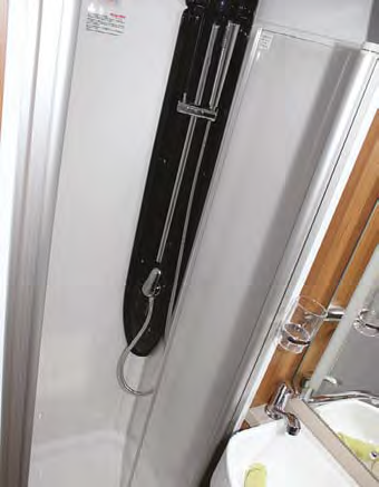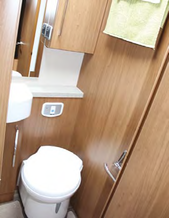 The bathroom is not large but gives you more room to move than most long-haul aircraft bathrooms – which can’t be said of all motorhomes. The separate shower recess, with its height-adjustable rose, is quite large for a motorhome. The curved bi-fold shower doors are a bit fiddly to operate but once familiar with the set-up they would be straightforward.