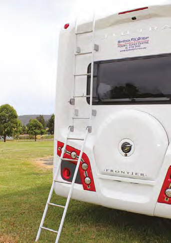 LED lighting is used throughout the Scout. A deep-cycle, 100-amp, 12-volt battery is used, and sits in the storage locker on the offside of the motorhome. A variable rate transformer/charger keeps the voltage up to the battery and above the entry door a battery state-of-charge readout is fitted.