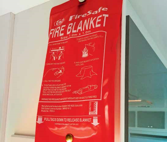 Always have a fire blanket in the kitchen area.