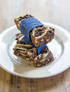 Crush the biscuits into small pieces and stir them into the melted chocolate mixture. Add the Rice Bubbles, nuts, and dried fruit.