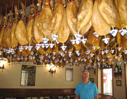 On to the beautiful city of A Coruna in the northwest corner of Spain. Here, motorway driving gives way to spectacular views of the Atlantic Ocean on one side and the rugged ranges on the other. We drove into our free camp right underneath the World Heritage-listed Torre de Hercules lighthouse, a short bus ride into the city. A Coruna is where, in 1588, the doomed Spanish Armada set sail only to be beaten by Sir Francis Drake, who then tried to capture the city, but was seen off by a local woman who is now a heroine. We entered the walls of the Old Town. Little plazas, old churches and cobbled lanes make this a wonderful place to wander through. In one street we saw a jamon (ham) shop where hams are hung for years after being smoked – the older they are, the more expensive. We called into Santiago de Compostela. There is a pilgrimage path from the Pyrenees to Santiago through many villages displaying a “Camino de Santiago” sign, used by 200,000 pilgrims a year since the 11th century and ends at the Cathedral.