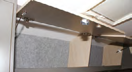 The single-bed layout – there is also a double-bed version – has a centre padded seat/table, large hopper windows with integral screens and blinds and four LED reading lights. There are five large bulkhead lockers for storage, which is excellent - except that you cannot open the rearmost locker while having an adjacent locker open also. This is not a deal-breaker, but clearly a constraint of the design and the space available here.
