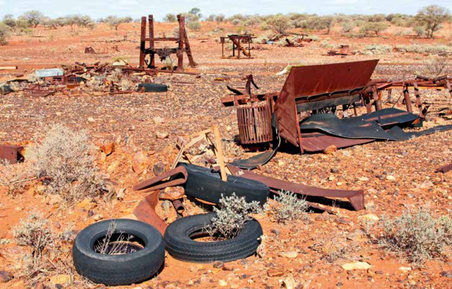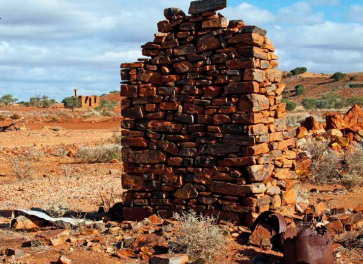 As you drive into Peak Hill, the first section of ruins is seen not far from the town’s air strip, marked by two very large tyres. There is a small ongoing mining operation here, but the owners apparently don’t like visitors calling in. To help ensure their privacy, a sign on their fenced off workings says ‘Keep Out/Bugger Off’, with another pointing tourists in the direction of the old ruins and away from their mine.