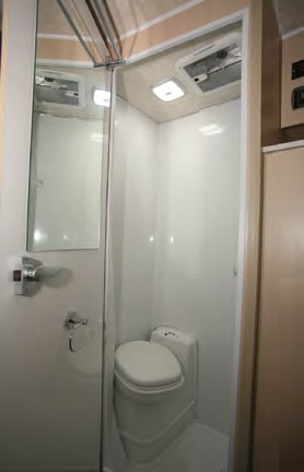 Looking for a compact but usable bathroom? Then look no further because the Ranger certainly has one of those. It does of course come with a variable height flexible hose shower, as well as a Thetford cassette toilet. Additional features include a mirror and loo roll holder, both mounted on the door. In the case of the latter, it would be good to remove the paper before taking a shower. Speaking of that, the water tank is only 65 litres, so if planning a few days in the bush, then water conservation would be a good idea.
