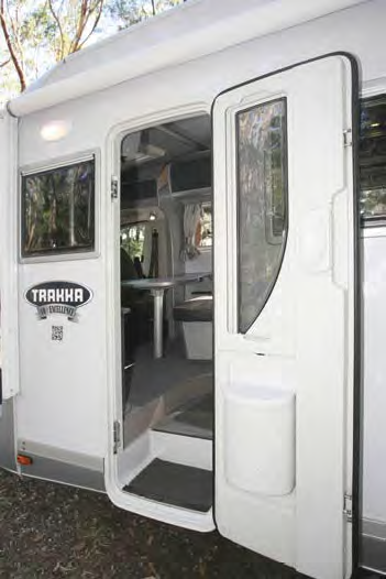 In keeping with most Trakka coachbuilt designs, the Trakkaway 700 body fits the Ducato very well. A close look at the fibreglass body reveals quite a number of what are known as complex curves – top and bottom. That means areas like the roof are curved fore and aft and to the sides. This not only helps create a better looking motorhome but has practical value as well – rainwater runs off the roof and in the case of the mouldings on the rear wall, they act as an optional rainwater retrieval system. In addition, those same rear mouldings are curved inwards, not only improving airflow but taking away the boxy look that characterises many motorhome designs.
