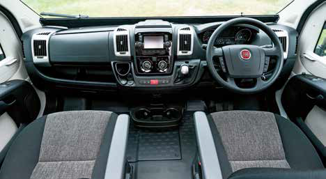 Up the front, the Fiat’s cab seats both swivel around to provide extra seating, with a small, single-polemounted table that can be set up in between. Although this table wouldn’t be ideal for eating a meal at, you could opt to leave the rear area set up as a bed and just use the front for lounging. Either way, the variety of sleeping and seating options available to you is a real bonus, particularly in what is by most standards, a pretty small motorhome.