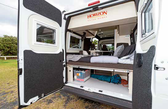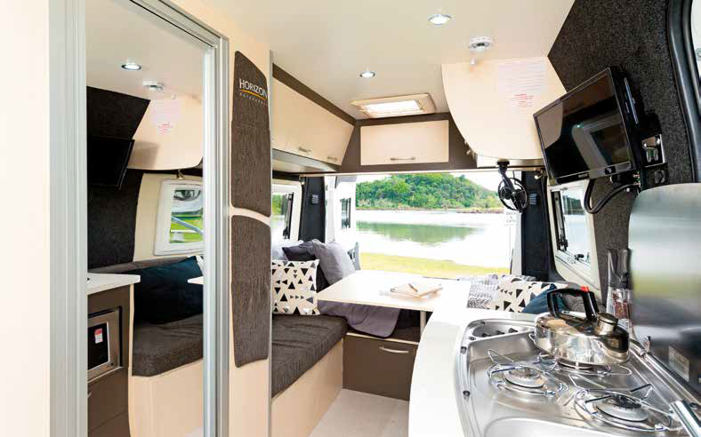 Lounging in the back of Horizon’s Melaleuca with the rear doors flung open, watching surfers cruise the waves from the lookout above the tiny north coast NSW town of Lennox Head, I realised this was my kind of motorhome: compact and cosy but fully equipped and self-contained. And after speaking to the team at Horizon, I don’t think I’m alone – the Melaleuca is just as popular with the Ballina-based manufacturer’s staff as it is among its clientele.