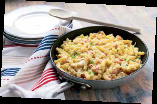 This lasagne will cook in less than half the time of the oven version. I use fusilli pasta in the lasagne; however, you could use farfalle or even lasagne noodles broken up into one centimetre pieces.