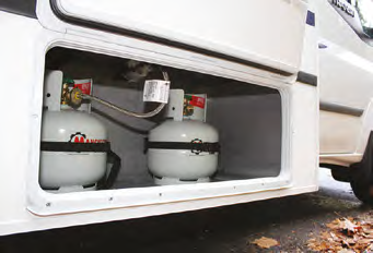 Like many motorhomes, this is a four-seater with the two-seat bench at the dinette fitted with lap-sash seatbelts. The Sovereign Deluxe has air helper springs at the rear with individual valves to set pressures at each side of the axle.