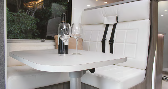 While the beautifully supple white leather seats would clean up quickly if looked after, it’s no secret they would mark easily. At least Suncamper offers plenty of different colour combinations so you can choose more muted tones if you prefer.
