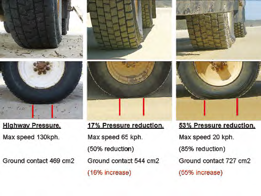 REALITY: Substantially true. The ultrawide low-profile tyres seen now on a few semi-off-road vehicles need a relatively high minimum tyre pressure to ensure their footprint is evenly formed. That pressure may be as high as 550 kPa (about 80 psi) – or 760 kPa (110 psi) plus in some wide-profile truck tyres. These tyres are, however, not intended for off-road use – although some are so used.