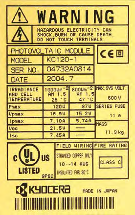 The most probable output of a top quality 120 watt mono-crystalline solar module at a true 25.C ambient temperature (87 watts) is clearly shown in the third column. The cell temperature at 25.C ambient is shown here as 47.C. The confusion does not stem from the solar industry - but clumsy and ongoing misreporting, plus camp fire and forum mythology. Pic: courtesy Kyocera.