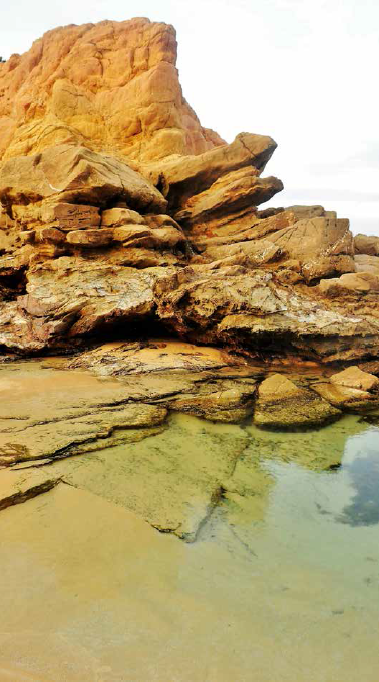 Then the hole appeared, slowly and beguilingly it draws you in, totally changing the appearance of Horse Head into what its name suggests. Somehow, the fact that there’s sky in the middle of the rock makes it so much more appealing. The camera has its moment here, recording the angles and variations of the theme, particularly the reflection in a rock pool that would soon be gone with the coming of the tide.