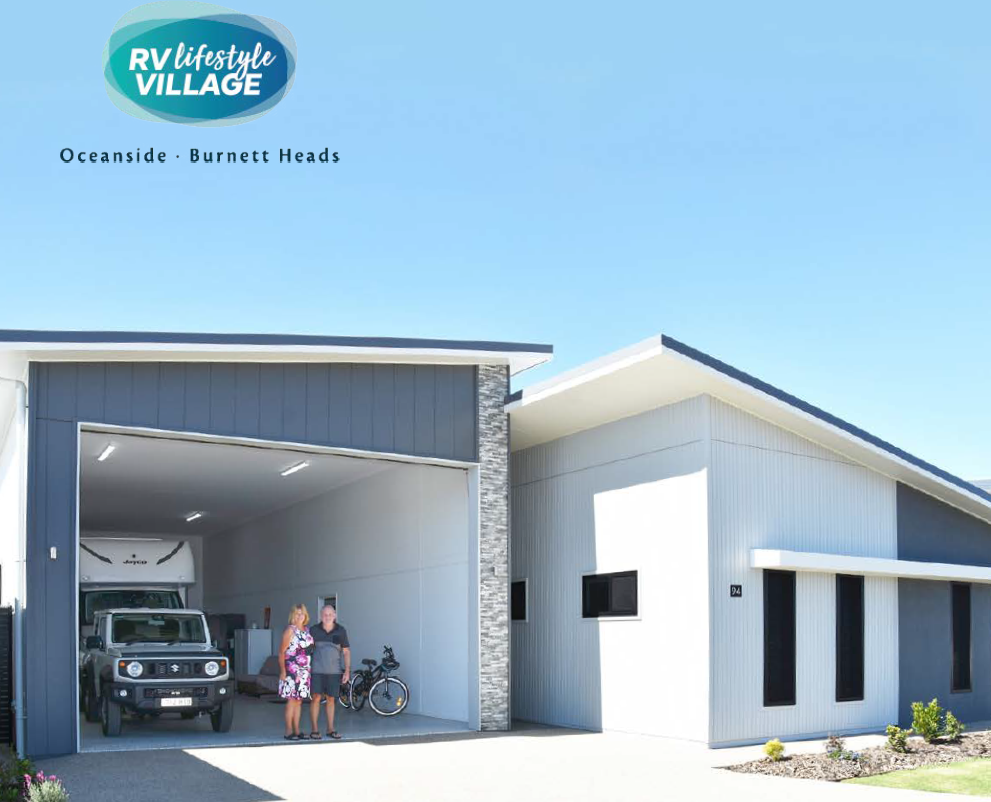RV Lifestyle Village Oceanside is located at 50 Marshall St, Burnett Heads, Queensland. Homes are currently available for purchase, and all feature RV garages. For more information, find them on Facebook or visit: rvlifestylevillage.com.au.