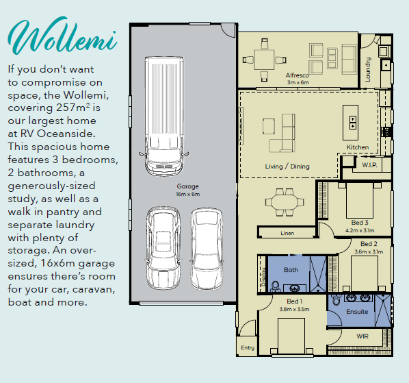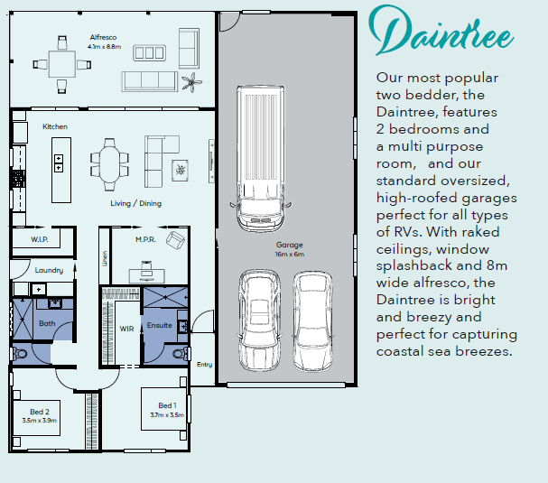 RV Lifestyle Village Oceanside offers beautifully crafted, spacious homes for purchase with choices of two or three bedrooms, and garages purposely built for RVs. With an average size garage measuring 16m x 6m and a garage door clearance of up to 3.6m, there is plenty of space to accommodate even the largest rigs, along with some extra toys and equipment.