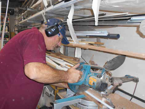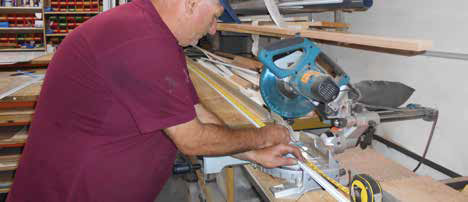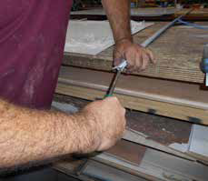 Wipe off any excess sealant. Then reposition the corner moulding infill so it butts up against the rope track. Cut as shown here. Handy hint: Apply sealant under the corner mould infill before reinstalling.