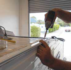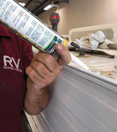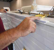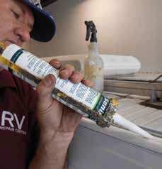 Once the rope track is fully fastened apply a coating of sealant into the groove as shown here.