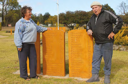 Prue Kerr and Ray Collins - the stone mason - in the First Fleet section of the Memorial Gardens