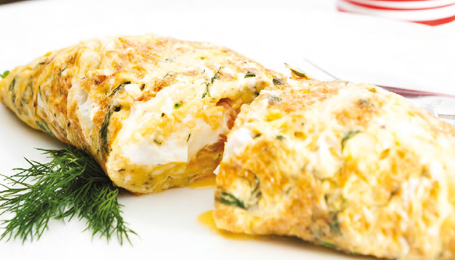 - Cut the omelette in two with a sharp knife and serve with fresh coffee and warm toast.