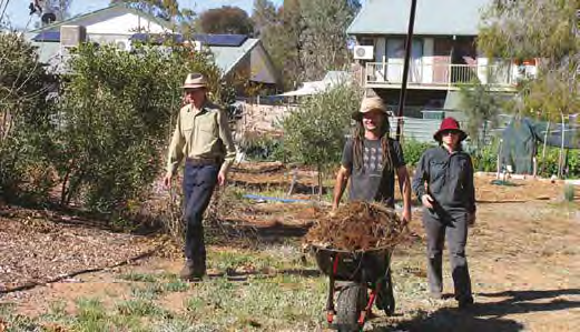 Alice Springs Community Garden volunteers moving mulch to a new garden bed